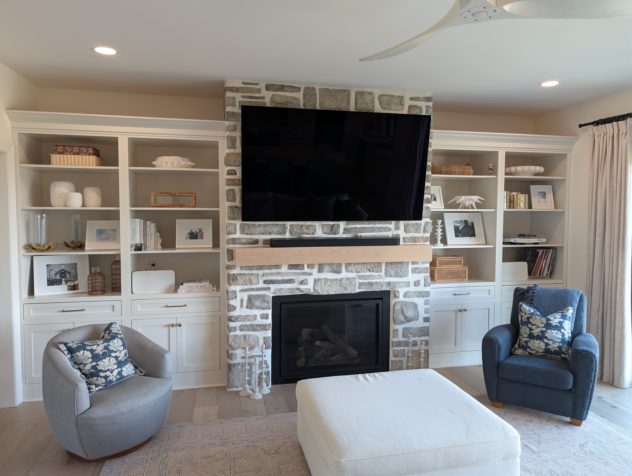 “Growing up with a dad who builds homes for a living, I’ve spent my whole life around construction and craftsmanship. Because of that, I’ve always had a pretty high standard for the people we trust to work on our home. When it came time to design our custom kitchen and living room built-ins, I knew there was no one better than Dom.
